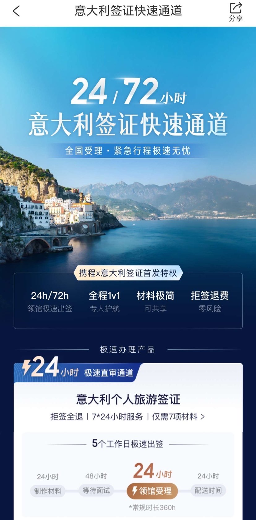 携程加码出境游“专属签证加急”服务 首期推出“意大利签证最快24小时完成预约”产品