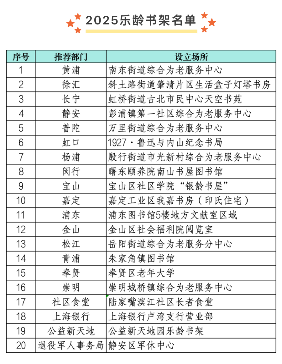 给老年人的书单来了!上海“乐龄书架”你家门口有吗
