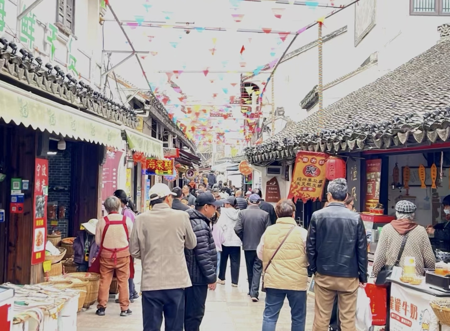 金山嘴渔村的“渔火照梅龙——非遗沉浸式越剧”活动别具匠心,将越剧演出与非遗体验深度融合。游客在移步易景欣赏经典剧目《梅龙镇》的过程中,还能亲手参与非遗绒花发簪制作、体验织渔网的乐趣、绘制精美的漆扇,在传统艺术与手工艺的交织中,沉浸式领略非遗文化的深厚底蕴。