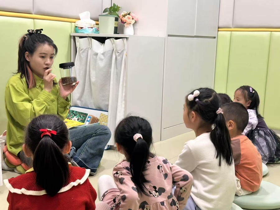 与此同时,在隔壁的“小朋友课堂”,专业早教老师带领孩子们走进绘本世界,探秘咖啡从豆子到杯子的奇妙旅程。孩子们用鼻子闻、用手摸,在故事与游戏中学习观察、记忆与表达。通过将咖啡元素串联成小故事、图卡游戏,锻炼了他们的感官认知与逻辑思维。