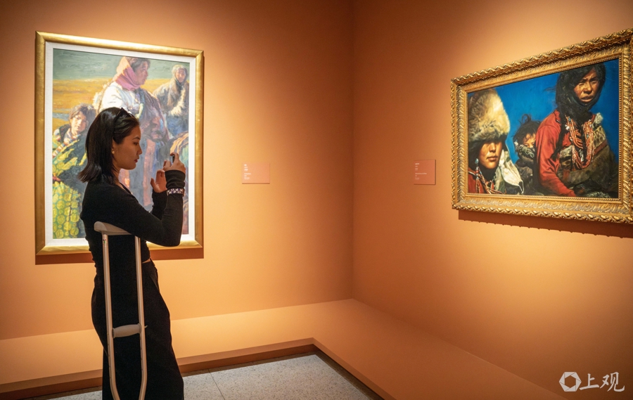 展品涵盖《开路先锋》《黄河颂》《占领总统府》《踱步》等早期经典作品;如《周庄》《苏州的黄昏》等留美时期开启的“水乡”系列绘画;为大众所熟悉的《长笛手》《女人与吉他》等“音乐家”系列绘画;以《夜宴》《浔阳遗韵》《丽人行》为代表的海派风格“仕女”系列绘画;以《玉堂春暖》为巅峰,将绘画美学延伸至电影实践中的“海上旧梦”系列绘画;以及包括《山地风》《绿绿的草原》在内,突破一贯浪漫写实传统的“西藏”系列绘画等。