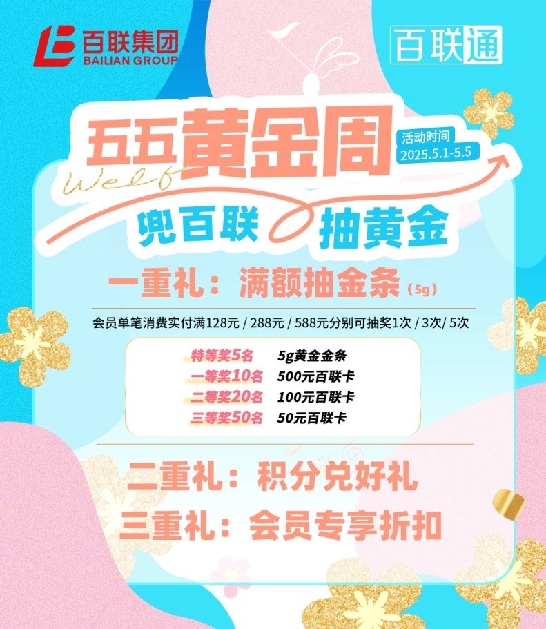 多维发力,撬动消费生态双向共振 面向近3000万的百联通会员,百联集团倾情打造“兜百联·抽黄金”的会员专项营销。百联通会员在百联旗下指定门店及i百联线上平台,消费满额即有机会获得“好运联联”足金金条、百联卡等多重权益。 本次五五购物节,百联集团的促消费朋友圈也不断扩容提质。“百联银联联联购”由百联集团与上海银联共同打造,带来“1+1>2”的超值特惠。登录云闪付“百联生活”抢80元代100元、800元代1000元多档团购代金券,更有云闪付百联专区满减消费券,大额折扣轻松享。 文旅商体展互融共促消费的热度依然不减,百联携东广“经典947”,打造“城市音乐会客厅·郎朗日”专场互动。届时,著名钢琴家郎朗将走进地标商业体第一百货商业中心,现场开授大师公益课。以音乐之声点亮百年南京路,开创“商业+艺术”的高雅消费新场景。 面对入境消费热,百联集团也以开放包容的姿态迎接全球消费者。近期,在上海浦东、虹桥两大国际机场的外籍人士一站式入境综合服务中心,百联集团向入境外籍人士提供BAILIAN Gift Card和价值756元的百联消费券。外籍消费者持卡可在百联旗下百货、购物中心、奥特莱斯、商超卖场、便利店、药房、钟表眼镜店等多场景业态消费使用,令外籍消费者轻松开启充满惊喜的消费之旅。