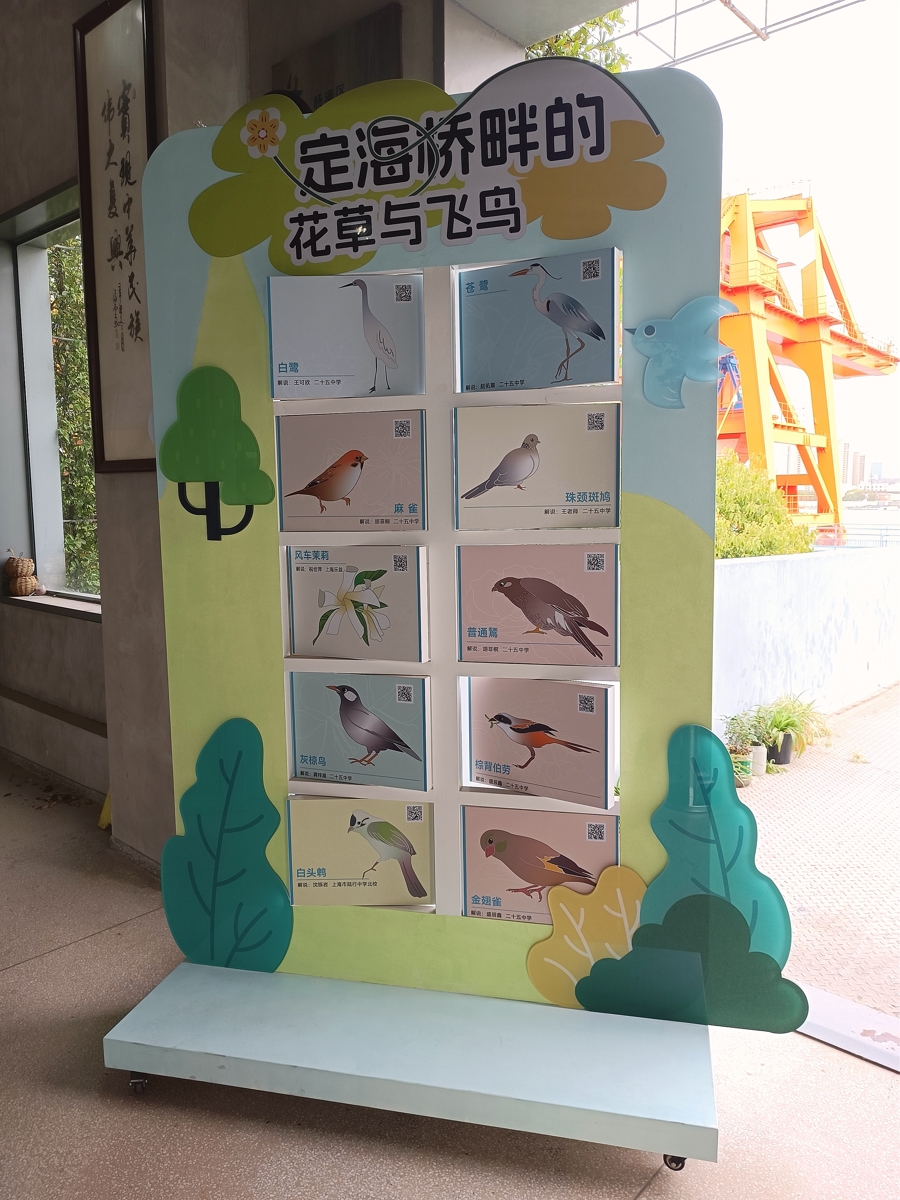 2024年,服务站邀请到观测过700余种鸟类的观鸟界大咖薄顺奇,同期还举办了“杨浦滨江的飞鸟与花草”叙事展,让参观者在红色故事中,感受杨浦滨江的生物多样性,感受城市更新带来的积极变化。