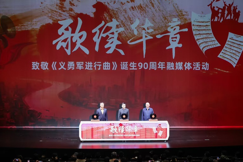 4月27日晚,“歌续华章”——致敬《义勇军进行曲》诞生90周年融媒体活动启动仪式在西岸大剧院举行。今年是中国人民抗日战争暨世界反法西斯战争胜利80周年,也是《义勇军进行曲》在上海百代小楼灌制的90周年,活动将推出重映修复版《风云儿女》、“《义勇军进行曲》上海印记”新媒体节目、《国家荣光》融媒体节目等内容。