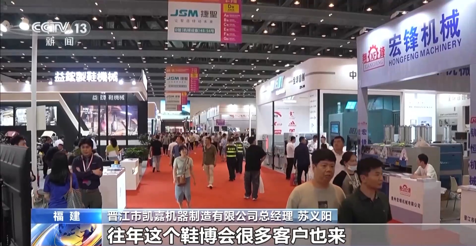 福建省晋江市凯嘉机器制造有限公司总经理 苏义阳:往年鞋博会有很多客户来,不过下订单的客户没这么多,今年可能是在各个原因的前提下,订单比往年应该增加差不多一倍。