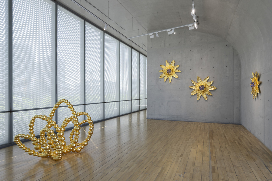 这些绚丽的作品为龙美术馆西岸馆的粗野主义建筑注入一种奇幻的氛围。它们散发出清冷的反射光,仿佛从物体内部透出,观看它们使人进入到夜间的视觉感受。并且,展品还从展厅内延伸至展厅外的户外公共平台,引导观众在幻镜与移步间栖居于和谐之境。