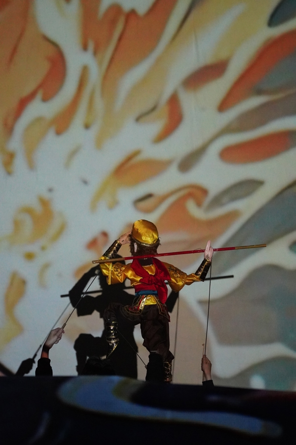 作为教育部中华优秀传统文化传承基地项目和上海市教育委员会木偶皮影紧缺人才培养项目重要成果,《红孩儿》将传统木偶戏与AI技术结合,赋予古老艺术新的生命力。“在千年技艺中注入当代心跳,这是我们一直追求的目标。”饰演红孩儿的演员之一王智弘表示,四年来,大家不仅系统学习提线木偶、杖头木偶等传统技艺,还积极探索木偶艺术与新媒体技术的融合可能,使得表演既有传统的韵味,又有时代的活力。