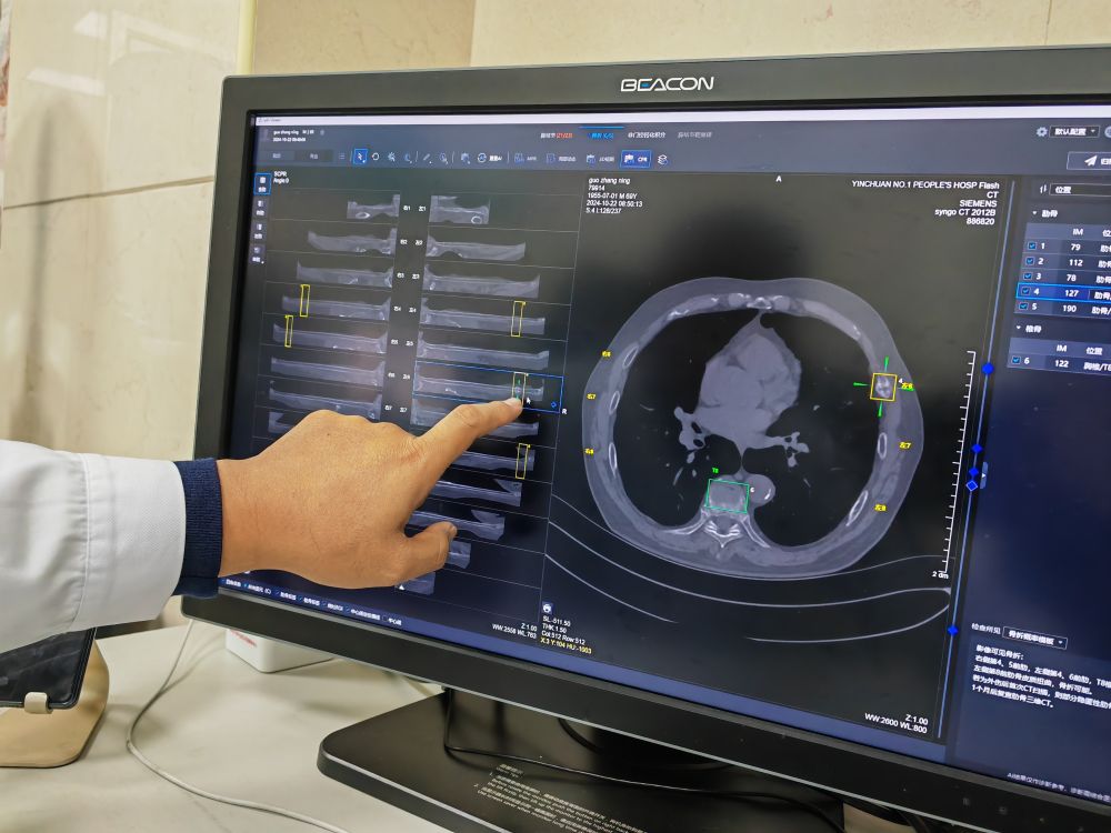 2024年10月25日,银川市第一人民医院医生使用人工智能辅助诊断系统阅片。
