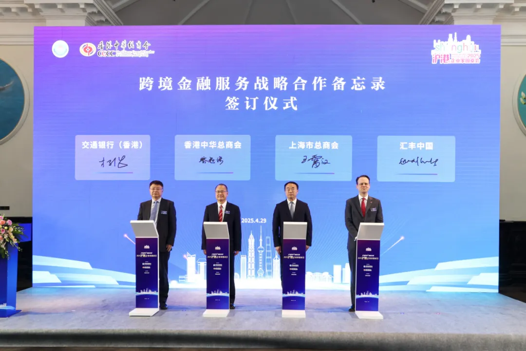 活动现场,上海市总商会、香港中华总商会共同与汇丰中国、交通银行(香港)签署跨境金融服务战略合作备忘录,共同提升金融服务质效。