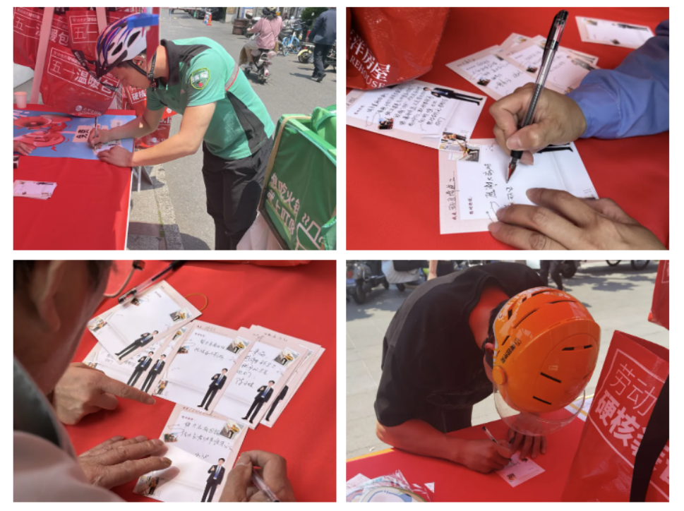 最打动人心的,是那些手写的祝福卡片。市民们可以在爱心驿站,将对劳动者的敬意与祝福倾注于笔尖,这些饱含深情的文字会随机放入 “暖心包” 中。“读到‘你的汗水让城市更美好’这句话时,心里特别暖。” 外卖员张哥感慨道。这些质朴而真挚的话语,化作了劳动者们前行路上最温暖的精神力量。