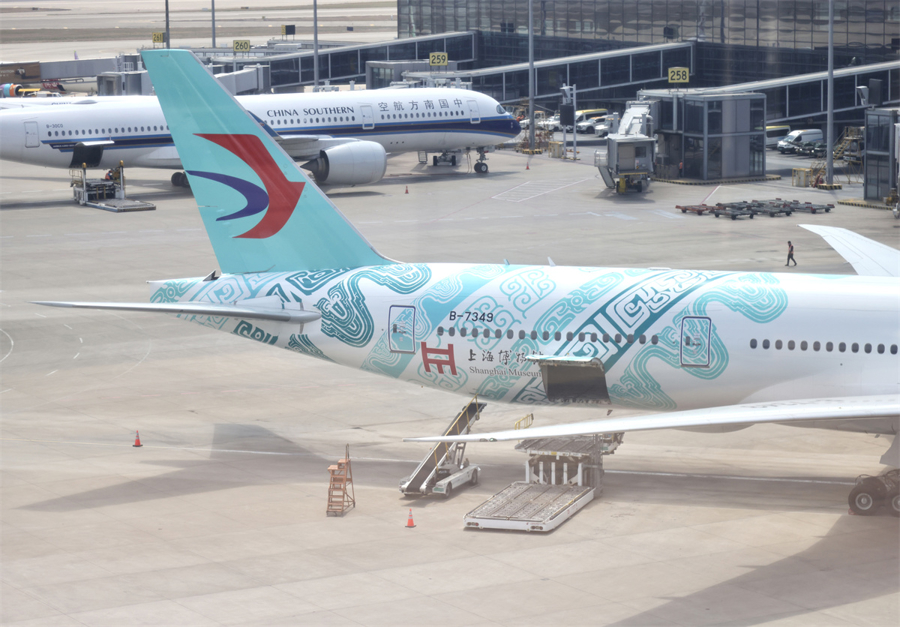 上博馆在机身尾部涂装了上博馆藏的青铜器的纹饰元素