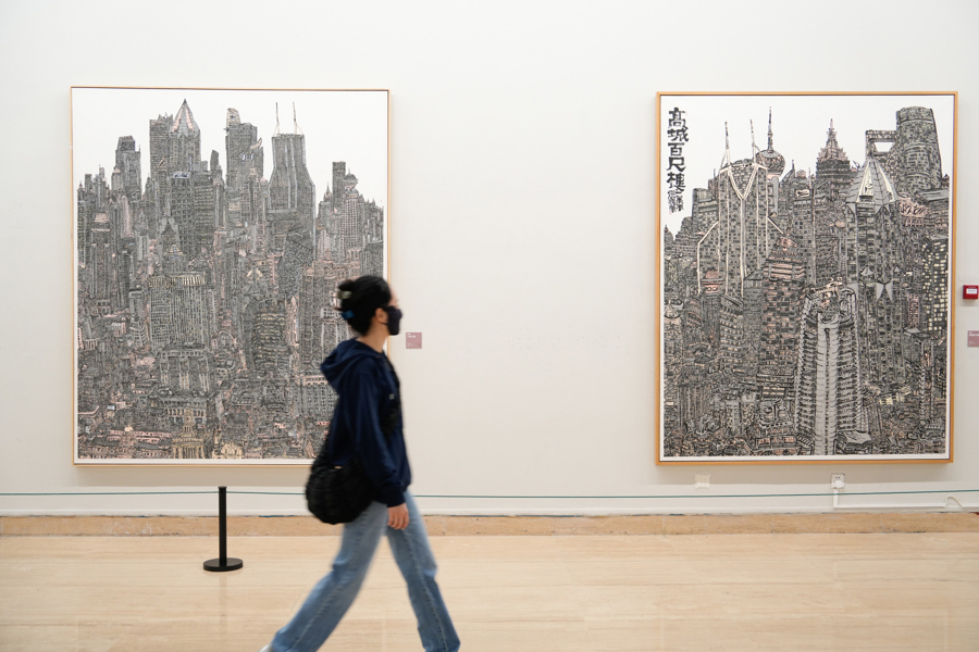 陈家泠的《贵美静安》、王劼音的《光影之城》……4月29日,“笔墨构城——上海美术学院城市山水作品展”在北京的中国美术馆对外展出。