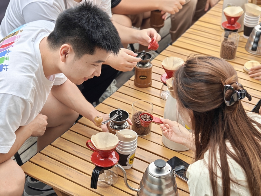 金山的“村咖”不仅是休闲空间,也是青年返乡创业的孵化平台。漾域团队吸纳前星巴克年轻咖啡师返乡就业,带动本地青年学习咖啡文化;“吖dai哩”主理人干先生留学归来后,以国际化视野赋能乡村文旅;采石咖啡主理人王先生在自身爱好驱动下,决定远离城市喧嚣,选择来金山创业,打造了金山首家“宠物友好咖啡店”,收获归属感与亲切社群。