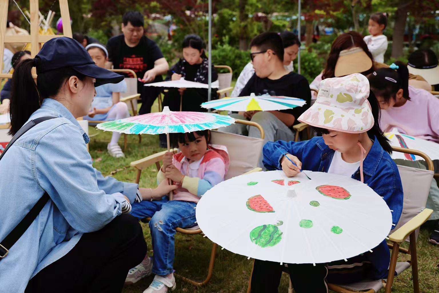与此同时,商业街中段的“湾区青部落”集市正掀起创意热浪,31个青年快闪摊位沿街铺展,非遗手作、地产优品……每一件小物都诠释了“金山创意,在地生长”的蓬勃生命力。国风手作摊位前,90后摊主正将小米珠串成流苏耳坠,蝴蝶翅膀晕染着金山农民画的靛蓝与朱红。相邻摊位上,年轻竹编灯艺制作人用柔性灯带改造传统花灯,游客手持兔子竹笼,感受老时光的童趣。“每件作品都是金山文化的掠影”,一位游客这样评价。农创区的烟火气同样炽热,禾希果蔬合作社的桃太郎番茄垒成金字塔,而隔壁飘来的米香,正是盛致农副产品有限公司近期最新研发的“稻花湾”大米冰淇淋,绵密奶香夹杂糙米颗粒,有孩子舔着冰淇淋说:“要是米饭也能那么好吃就好了。”