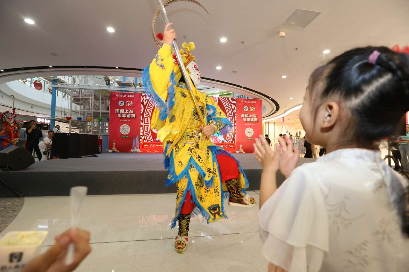 “铿锵的鼓点、俏皮的手狮,一下子就把我们的注意力都吸引过来了!整台演出,孩子们看得津津有味”“在商场购物还能欣赏到一台这么丰富多彩的文艺演出,太开心了”……5月1日,2025年闵行区“激情闵行”社区大联演暨红色文艺轻骑兵下基层系列活动正式启动,马桥镇专场和浦江镇专场分别走进辖区商圈,推动“文艺+消费”双轮驱动,为“假日经济”再添一把火,在文化与商业之间架起融合共赢的桥梁。