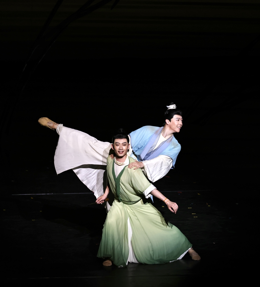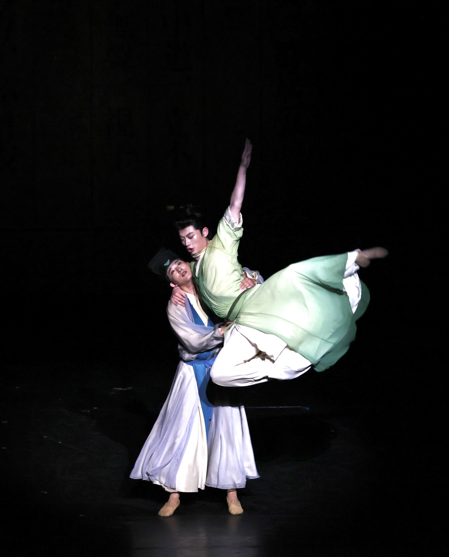 当晚,随着一段悠扬古朴的音乐响起,人们被瞬间带回到明朝。舞台上,斗志昂扬的青年宋应星踏上赶考之路,然而命运对他似乎有别的安排——六次科举落第,他的人生陷入低谷,但也正是这些挫折,让他将目光投向民间,开启了对古代科技工艺的探索之旅。毕业于北京舞蹈学院的安一宁在剧中饰演青年宋应星,凭借出色的身体控制力和轻盈飘逸的舞姿,将角色最初的意气风发与几番落榜后内心的挣扎迷茫展现得淋漓尽致。