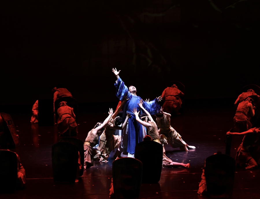 《天工开物》是马蛟龙结束海外教学、回到国内加盟的首部舞剧。这部被誉为“中国17世纪工艺百科全书”的作品,对他来说是全新挑战,“《天工开物》原著记载了明代大量生产技术和工具,舞剧通过舞蹈、影像和现代科技展现宋应星的一生,戏剧成分大于舞蹈,对人物内心的把控要非常精准。”为了演好老年宋应星,他在陆川等主创的点拨下,揣摩人物性格,在作品中感受其风骨,从肢体语言、神态表情等多方面来塑造角色:“我是舞蹈演员,更多通过身体和中国舞自带的气质去塑造人物。我不断想象生活在宋应星的时代,自己会怎么做,去感受他的心境。”