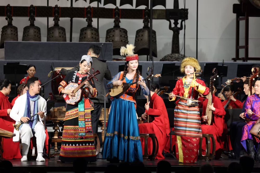 音乐会以五大篇章展开:从先秦乐器奏响的《大春秋》,到展现多民族音乐融合的《纳百川》,直至终章《咏中华》的恢宏合鸣。特别值得一提的是,《纳百川》章节创新性地将伽倻琴、萨塔尔等少数民族乐器纳入编制,在保持各自特色的基础上,实现了"和而不同"的艺术效果。