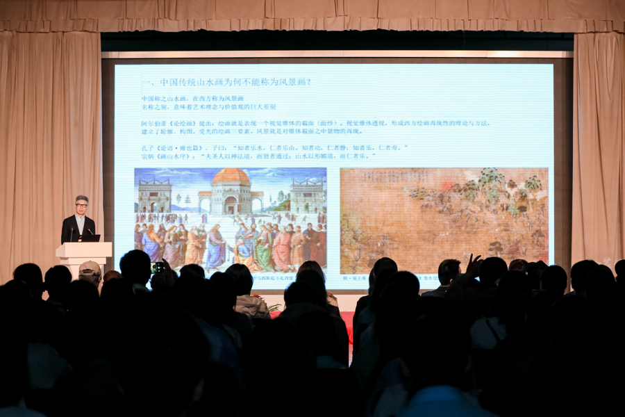 “中国传统山水画为何不能称为‘风景画’?”讲座现场,尚辉抛出的这样一个问题引人思考。名称之别,意味着中西之间艺术理念与价值观的巨大差别,也表现为截然不同的观看方式。当下中国城镇快速发展所形成的都市景观,理应成为当代中国画表达现实感受的聚焦点。而如何将视觉经验转化为笔墨程式,即为当天“中华艺术大家说”热烈探讨的话题,也是这个时代亟待突破的课题。