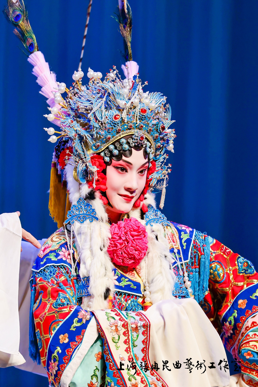 行当是戏曲演员把握人物的工具,要想演得动人,还需一戏一格。在《红梨记·亭会》《雷峰塔·断桥》《凤凰山·百花赠剑》中,张冉展示出闺门旦行当的不同可能性,演绎不同人物的生命张力。《红梨记》文辞雅致,主角谢素秋兼具诗才、胆识与炽热的情感,相较于《牡丹亭》杜丽娘的梦幻情思,更显行动力。张冉以折扇、水袖的程式动作展现情愫,又以步法节奏表达“发乎情”与“止乎礼”的矛盾。白娘子与许仙的故事,是蛇年的重头戏。昆曲《雷峰塔》以载歌载舞著称。张冉把握前人留下舞台提示“旦行作腹痛介”,身怀六甲的胎气占几分、水斗败阵的窘境占几分、爱与恨各占几分,闺门旦的青春形象又占几分,综合形成闺门旦表演艺术的“风骨迷人”。《凤凰山》作者早已失考,演出本却在一代代艺人的口口相传中保留下来。在张冉看来,百花公主为草原女子,又有骄娇二气。凤冠上五六尺长的雉尾翎子,舞动起来富有动感,弯曲起来可以辅助表演。她学习雉尾生的表演技巧,又结合闺门旦的家门特征,当雉尾划过海俊的脸颊,成为百花公主最为深切的表白。