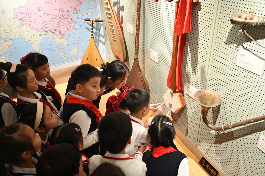 东方乐器博物馆的最新展陈,以器说史、以器观俗、以器见人,讲述民族交往交流交融的历史,通过乐器彰显中华文明博大精深。孩子们在博物馆内观赏诸如琴、笛、渔鼓、筝等中华民族不同历史时期、不同地域的乐器,聆听着这些无声“时光讲解员”的历史。