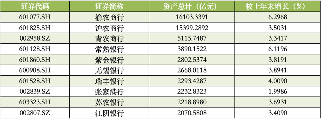 从资产规模看,截至2025年3月末,A股上市农商行资产规模总体较上年末增长4.48%,较上年同期的3.83%上升0.65个百分点。