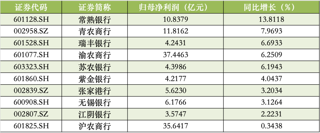 10家A股农商行一季报:净利均实现增长,常熟银行营收、净利增速领跑