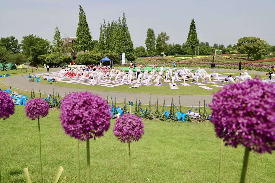 共绘健康与自然和谐画卷 百名瑜伽爱好者花海“绽放”