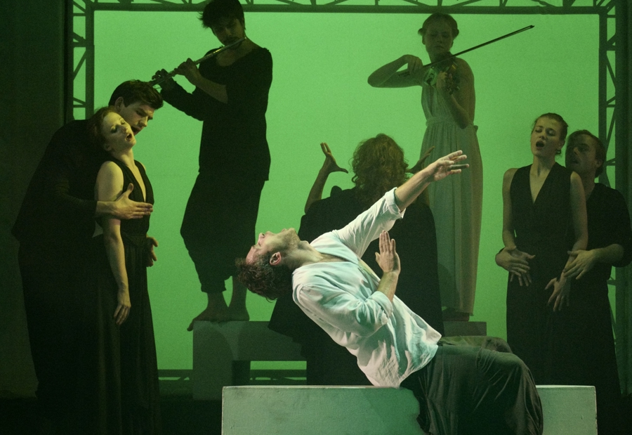 这部戏有155个角色,由28名演员出演。他们充满生机、能量爆棚,把一个个个性鲜明乃至怪诞的角色,都演得生龙活虎、魅力十足。道具颇简单,仅仅是影子的投射,就能把看似教授,实则魔鬼的威慑力显现出来。乐队很活跃,现场音乐的氛围全靠小乐队随时弹奏。