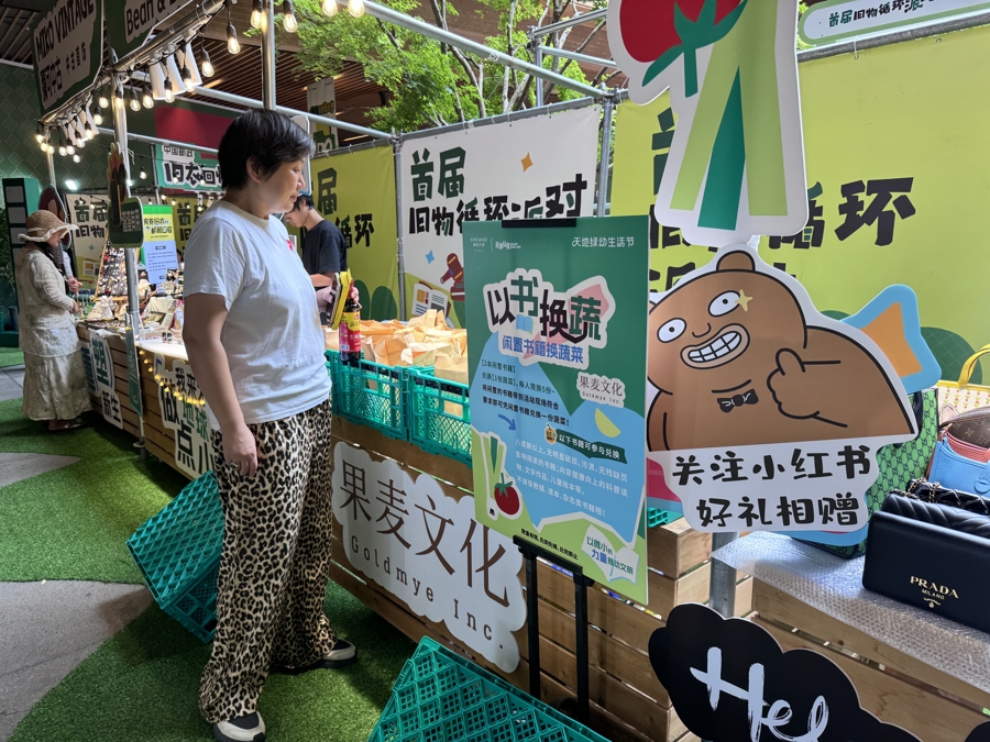 作为入选虹口区文旅商体展“必购榜”榜单的活动之一,这个“五一”假期,瑞虹天地月亮湾举办首届“旧物循环派对”。