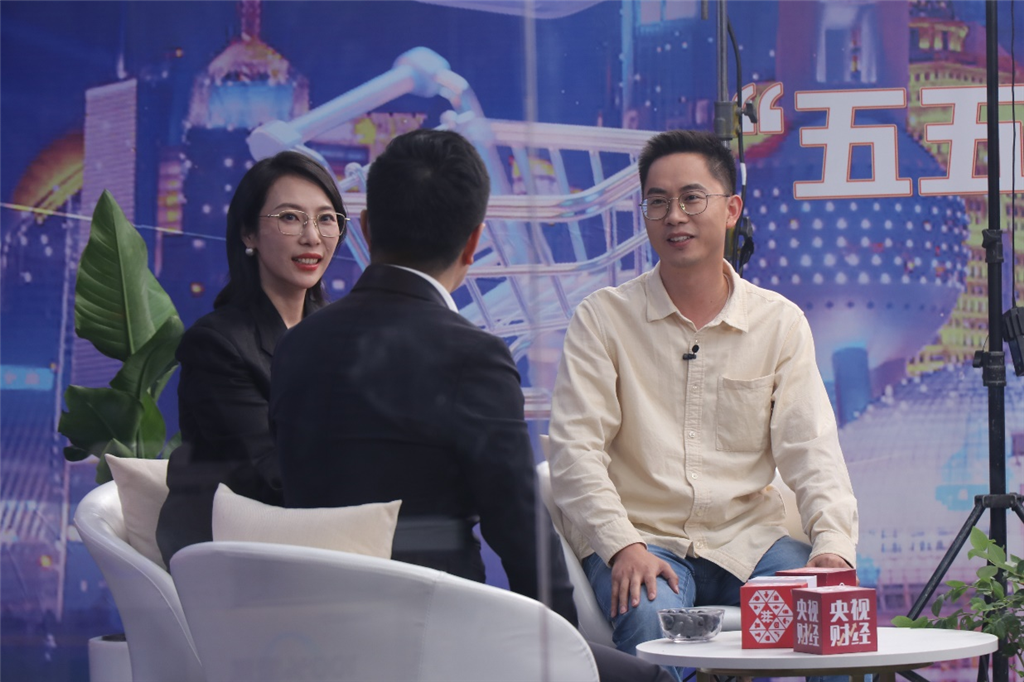 ▲5月1日,拼多多副总裁侯凯笛(左一)与新质商家代表王辉(右一)共同参加拼多多联合中央广播电视总台推出的“五五购物节”专项直播节目。李思轩▏摄
