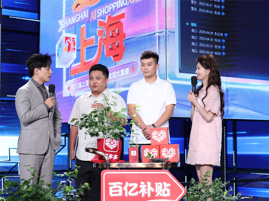 ▲第六届“五五购物节”启动的第一时间,拼多多联合中央广播电视总台推出专项直播节目。李思轩▏摄