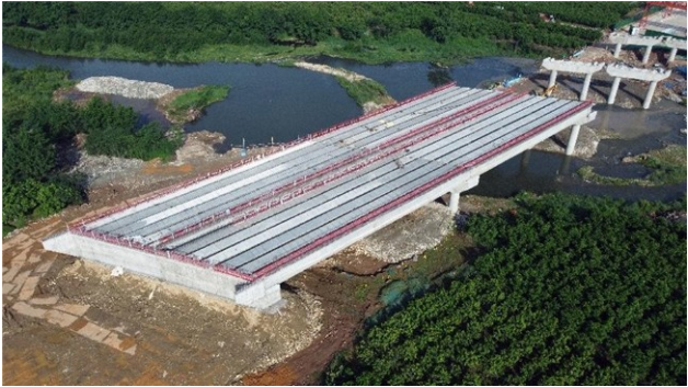蒲江公路项目人员坚守施工一线,抢抓40米T梁预制关键节点,在汛期来临前要把蒲江河大桥梁体架设完成,杜绝汛期临河施工作业,确保项目施工进度和施工作业安全。