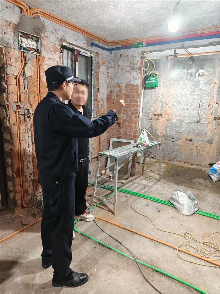 近年来,随着居民对房屋居住需求提高,老旧房屋原始设计格局已经很难满足当前社会居住需求,违规改建、损坏房屋承重结构的情况便随之产生。近日,闵行区梅陇镇综合行政执法队(梅陇城管中队)根据投诉线索,至闵行区莲花南路某小区检查,发现业主在房屋装修过程中拆除多处墙体,经房屋质量检测机构出具书面意见,确认被拆除墙体为房屋承重结构。执法队员第一时间对当事人损坏房屋承重结构行为立案调查,并根据相关调查的事实,法律法规的适用、处罚的裁量基准,对当事人作出责令改正决定。