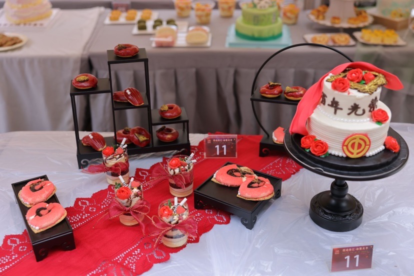 值得一提的是,围绕今年全国总工会成立100周年、上海总工会成立100周年的“百年”主题,现场不少咖啡师、甜品师创意频出。柴源的获奖作品被取名为“百载凝香 红蕴苍兰”,她解释,名字琢磨了很久,希望能把工会百年历程融合在咖啡创意中。西点竞技区更化身为红色工运主题艺术展,“工”味十足,选手们将数字“100”、工会标识、劳动者形象、“1925-2025”工会时间轴、缎带飘带等元素融入甜品造型,方寸之间现匠心。