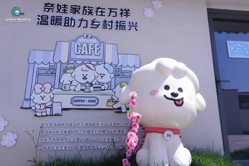 最吸睛的当属门口的萌宠奈娃,开门进去是可玩可休憩可品咖啡的奈娃家族咖啡馆,集齐了温暖可爱的IP产品。