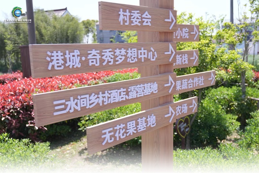 穿过万祥镇新建村“一步一景”的乡间窄路,转角处亮眼的木制路牌,指示着“港城·奇秀梦想中心”“三水间乡村酒店、露营基地”等乡村振兴项目。