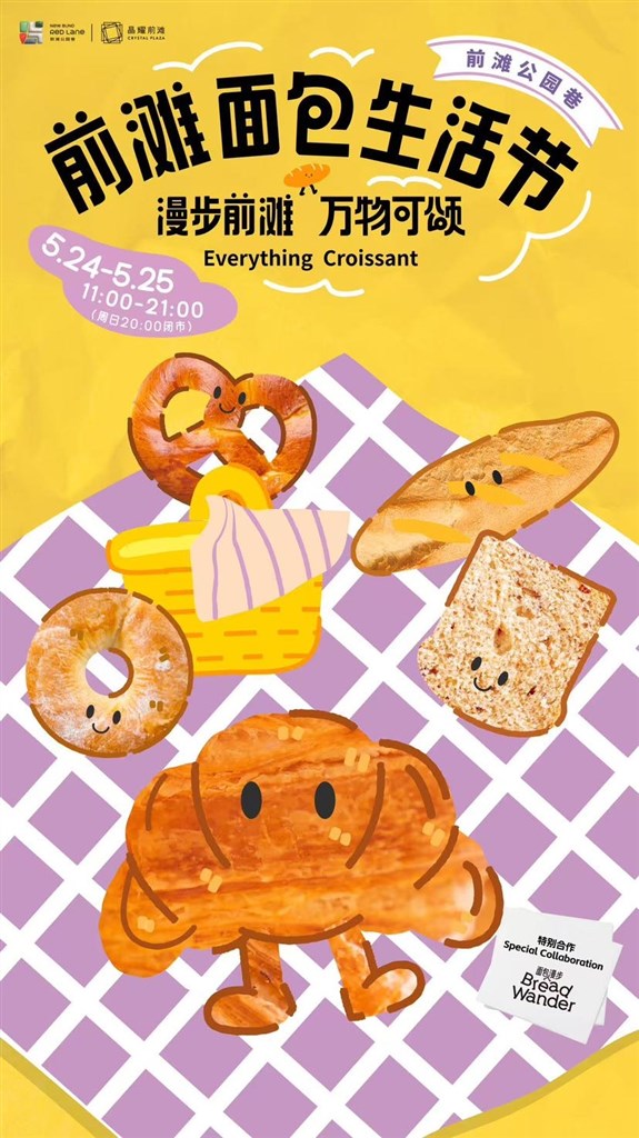 前滩公园巷/晶耀前滩推出前滩面包生活节(5月24日-5月25日),携手热门面包节IP“漫步面包”,共同打造一场食指大动的碳水狂欢,期间集结70+品牌,从吐司、可颂、可露丽到碱水、恰巴塔、巴斯克等,将世界各地的限定美味带了前滩,打造有温度的面包大磁场。