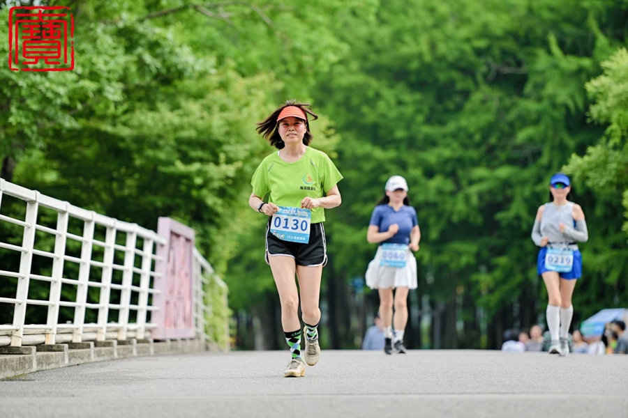 去年荣获男子10公里冠军的叶恭吉,今年再次出现在赛场。“你今年是不是蝉联冠军了啊?”一位路过的社区干部询问道。“我今年只跑了第二名,冠军是个大学生,我跟他之前就认识,他太厉害了!”他边擦汗边笑着说,今年的比赛更专业了,氛围也更加浓厚,“我对赛场太熟悉了,我每天都在这里跑步。”