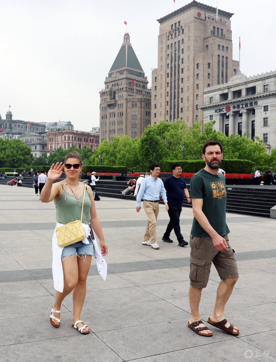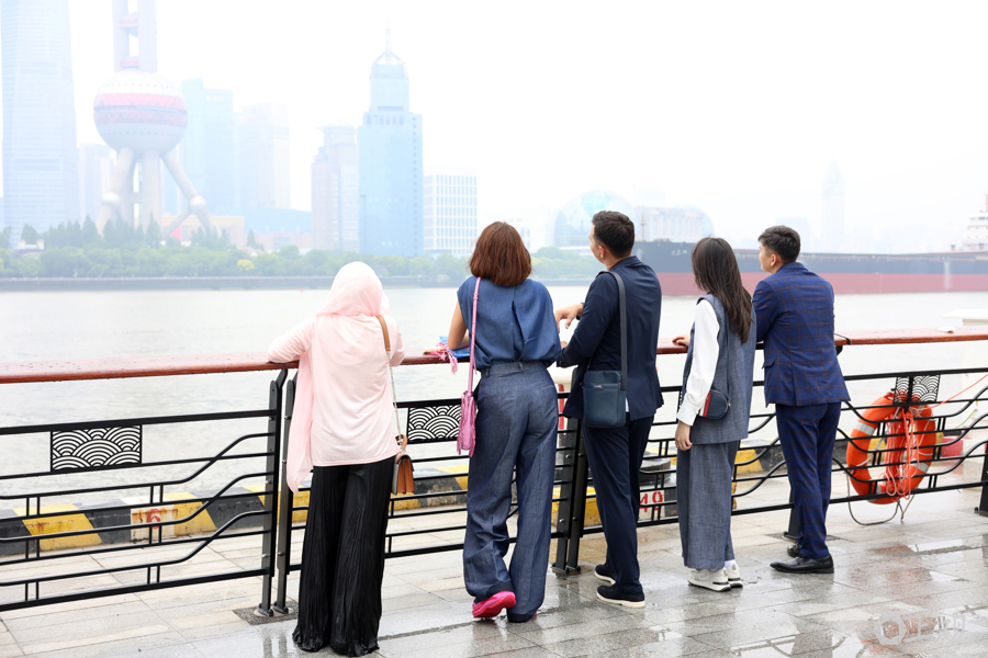 没来上海前,通过大众传媒植入头脑的东方明珠造型,是他们对上海最直观的想象。当置身北外滩黄浦江亲水平台看到陆家嘴“三件套”时,他们不约而同发出啧啧赞叹声。