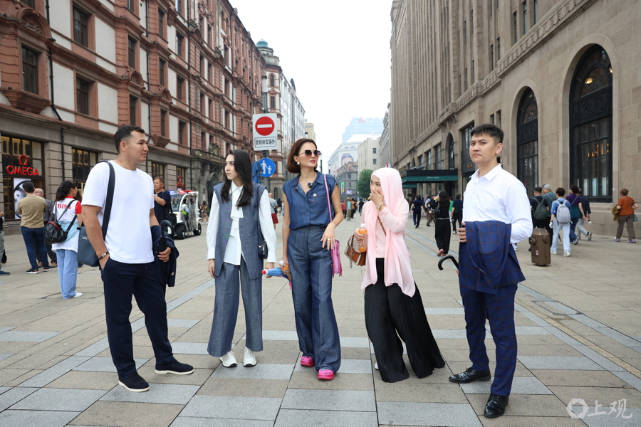 Aktoty Nurkeshova女士一行游览南京路步行街。他们缓慢行走,边走边看,不知不觉便走到位于人民广场的入驻酒店。
