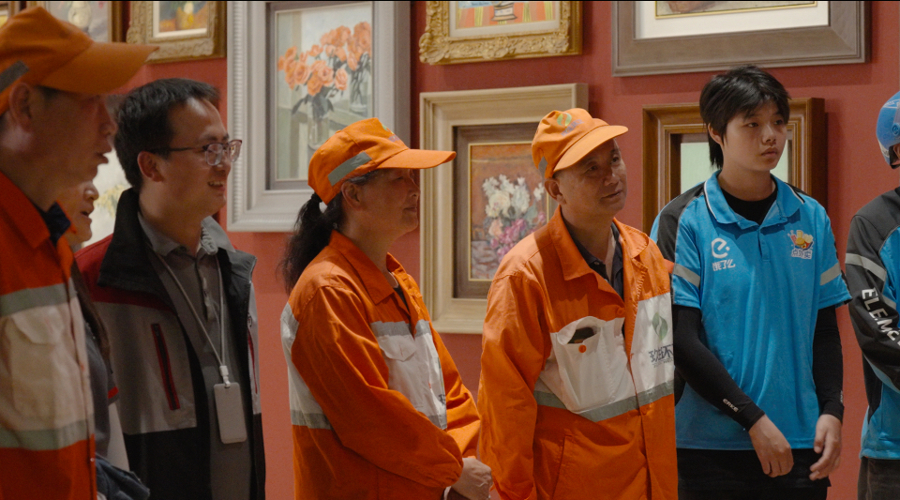 5月18日,德基艺术博物馆迎来了一批特殊的工作人员——来自南京市洪武北路小学的“红领巾讲解员”。他们为受邀来到现场参观的外卖员、快递员、环卫工人等新就业群体带来了一场生动而专业的展览讲解。