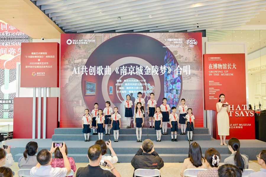 由南京市洪武北路小学AI创作、南京市立贤小学学生编曲、南京市月苑第一小学学生演唱、德基艺术博物馆指导的AI共创歌曲《南京城,金陵梦》(City of Nanjing, Dream of Jinling),以清澈童声与科技赋能的奇妙碰撞,将秦淮河的灯影、紫金山的星辰、明城墙的砖石化作流动的音符。