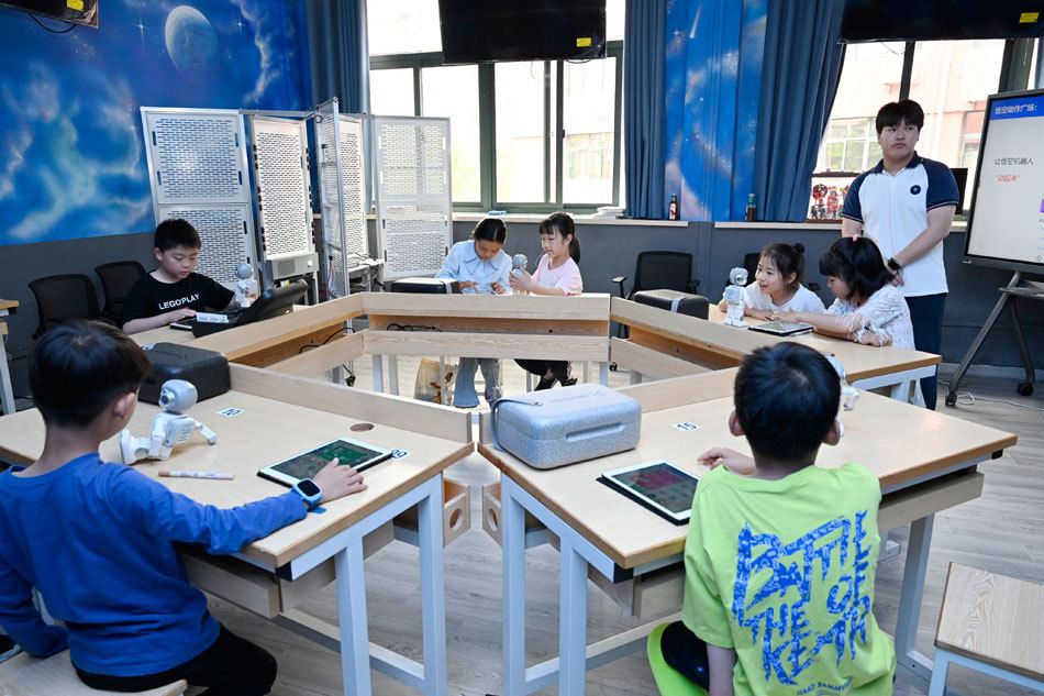 在上海市第二轻工业学校,孩子们在体验“智能机器人工程师”项目。