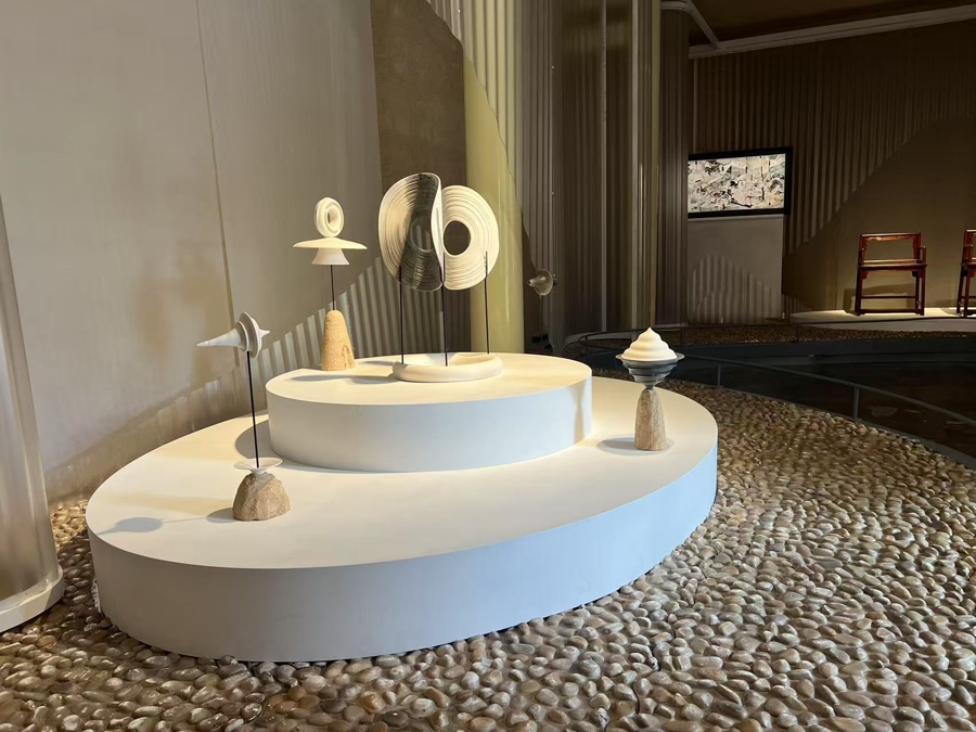 走进恭王府嘉乐堂,仿佛踏入了一条连接古今的时光隧道。展览由清华大学美术学院教授、中国美术家协会陶瓷艺术委员会主任白明与恭王府博物馆共同策划,以“场域记忆”为核心概念,通过剧场化的展陈设计和精妙的灯光叙事,将明清家具与现代陶艺置于同一时空,形成独特的艺术表达。