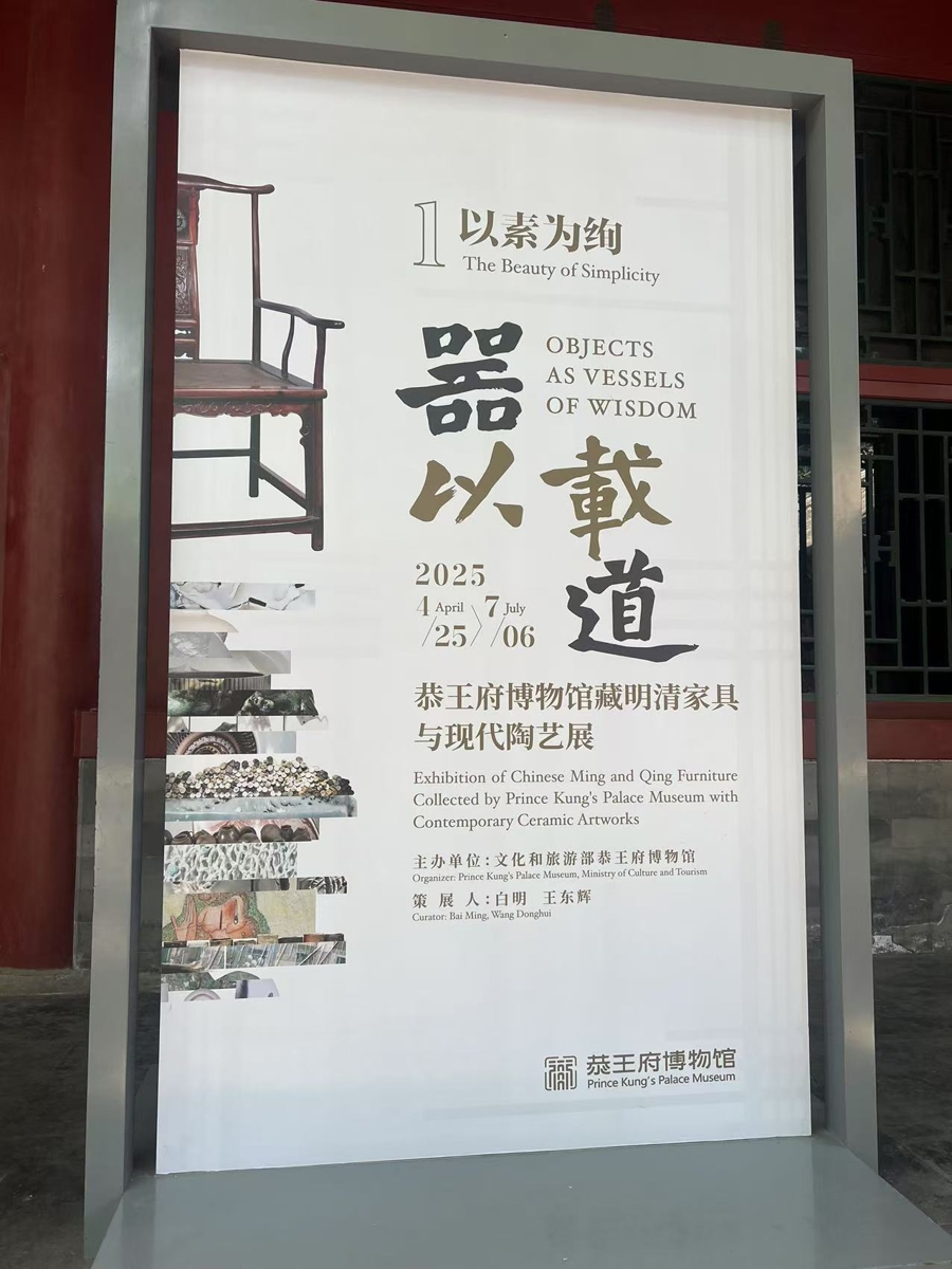 在初夏的微风中,恭王府嘉乐堂迎来了一场跨越时空的艺术对话。近日,由文化和旅游部恭王府博物馆主办的“器以载道——恭王府博物馆藏明清家具与现代陶艺展”启幕。展览汇聚了29件珍贵的明清家具与18位当代艺术家创作的28件陶艺作品,以独特的策展思路,让传统与当代在古建空间中碰撞出新的美学火花。