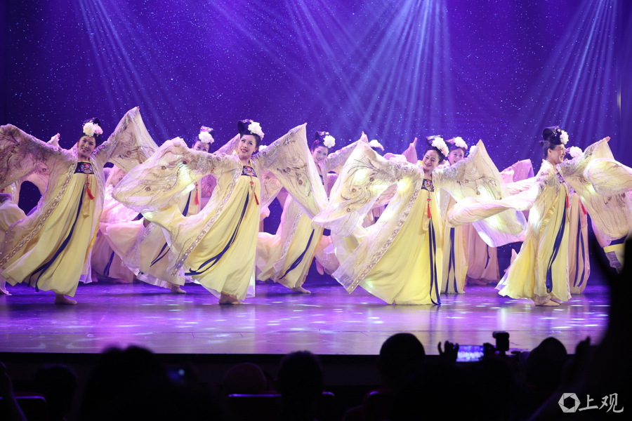 普陀区长征镇社区文化活动中心新长征艺术团的《云裾惊鸿》,舞者们用轻盈而优雅的舞姿让观众在欣赏美的同时,也感受到了中国传统文化的魅力和内涵。