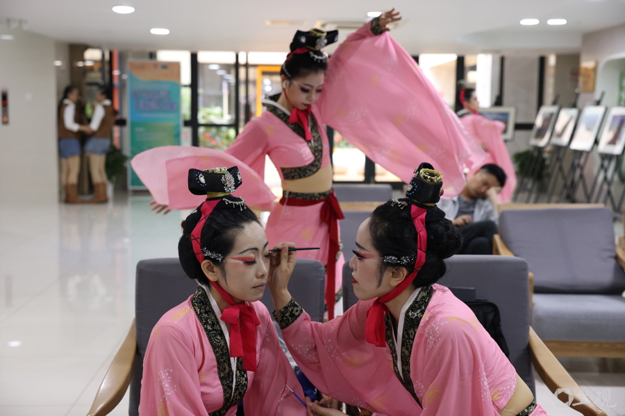 演出前,各团队在带队老师指导下进行化妆和排练,确保演出将最好姿态呈现给观众。