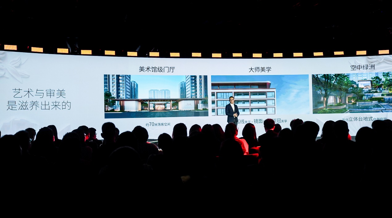 产品打造则始终围绕着四个关键词,"深度奢定"贯穿建筑、景观/乃至到室内每个细节,"艺术渗透"让整个社区成为可参与的艺术场域,"全域智能"实现便捷的智慧生活,"人本科技"将健康住宅理念融入每个空间,重新定义当代奢居体验。