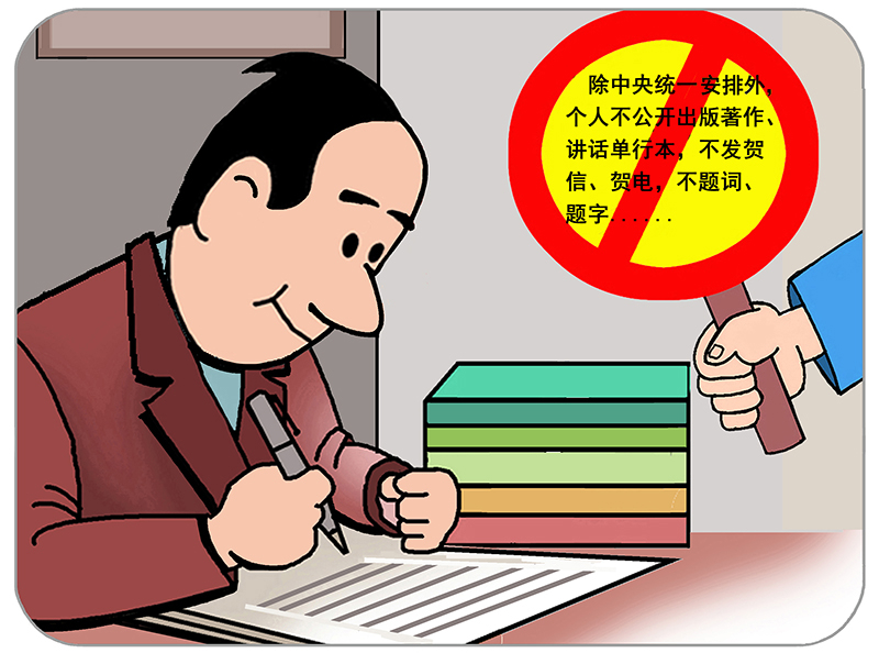 七、要严格文稿发表,除中央统一安排外,个人不公开出版著作、讲话单行本,不发贺信、贺电,不题词、题字。